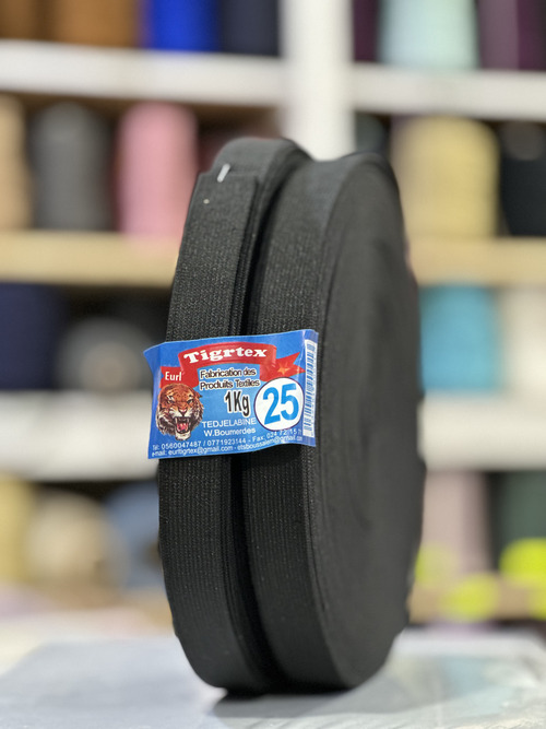 هذا المنتج عبارة عن مطاط خياطة باللون الأسود، مثالي للاستخدام في أعمال الخياطة والتفصيل. يحمل الملصق المثبت على المنتج رقم 25، وهو معبأ بوزن يصل إلى 1 كيلوغرام لتلبية احتياجات متنوعة في مجال النسيج والملابس.