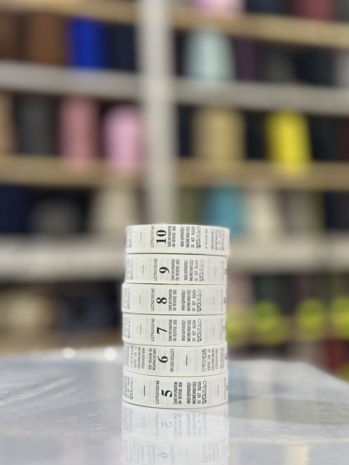 Ces étiquettes textiles en rouleau sont spécialement conçues pour indiquer les tailles des vêtements dans le secteur de la confection textile. Elles permettent une identification claire et rapide des tailles pour un usage professionnel.