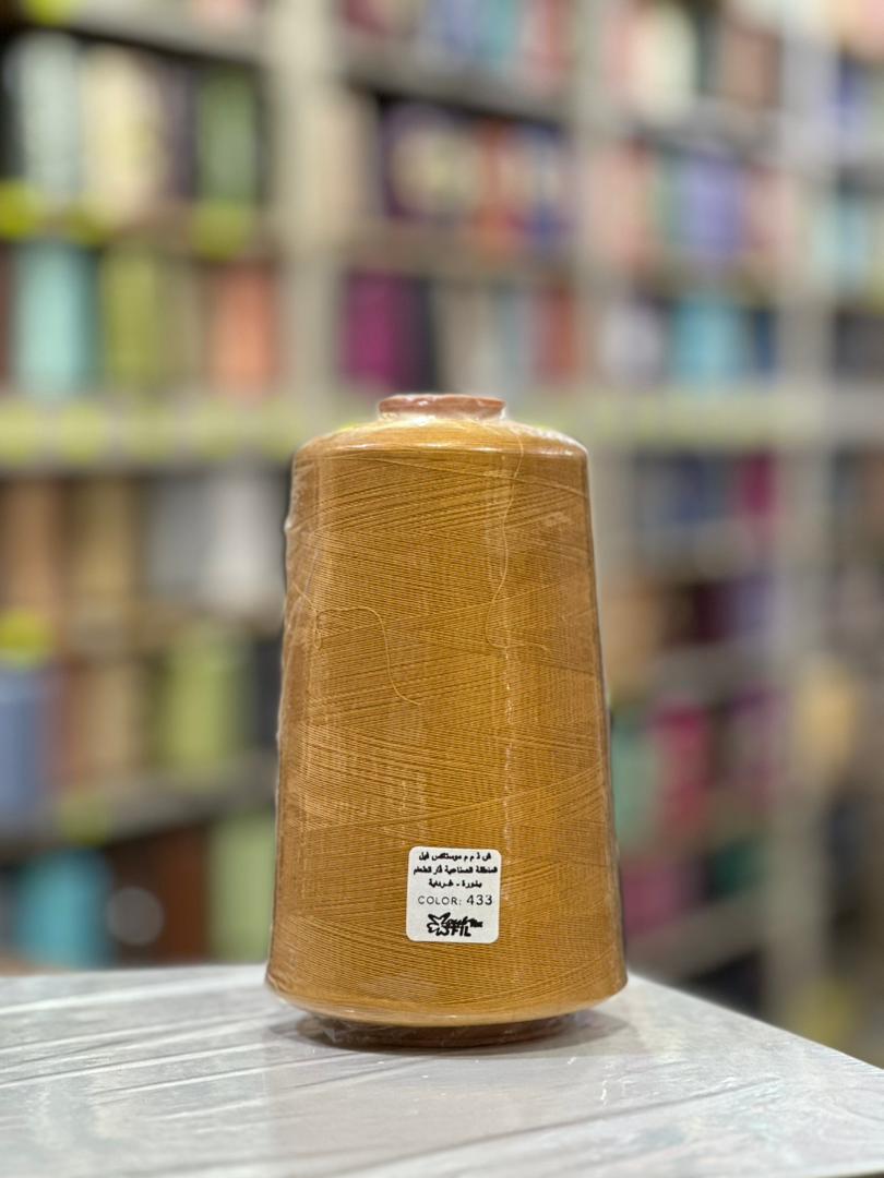 تظهر في الصورة بكرة خيط خياطة كبيرة بوزن يقارب 400 غرام، وهي ملفوفة بخيط ذو لون بيج مائل للسكري. الخيط معروض برقم اللون 433 كما هو مكتوب بوضوح على الملصق الموجود على البكرة. هذه البكرة مناسبة للاستخدام في ماكينات الخياطة المختلفة وتعتبر مثالية لاستعمالات ورش
